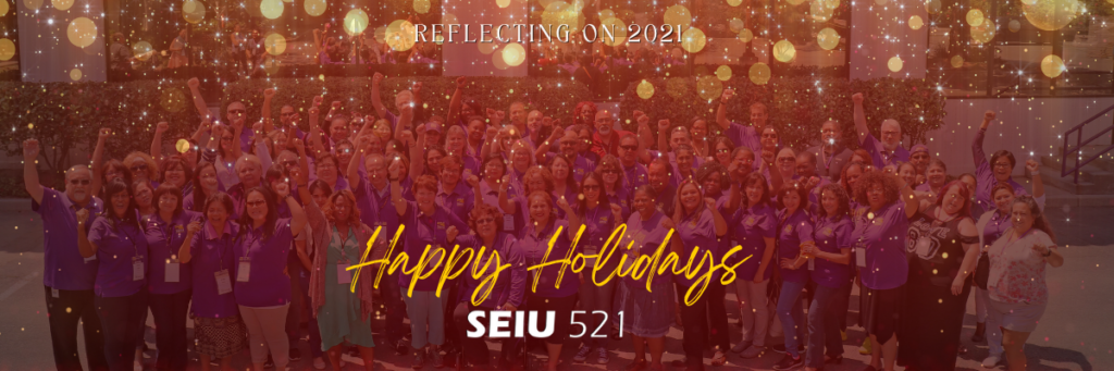 As the holiday season continues and 2021 comes to a close, SEIU 521 Chief Elected Officer Riko Mendez, myself, and the entire SEIU 521 Executive Board want to express how grateful we are for you. 2021 was a year filled with moments of hope and celebration, but also of tragedy and heartbreak. Your devotion to the community we serve on the frontlines everyday and commitment to your families helped us get through these difficult and unprecedented times.