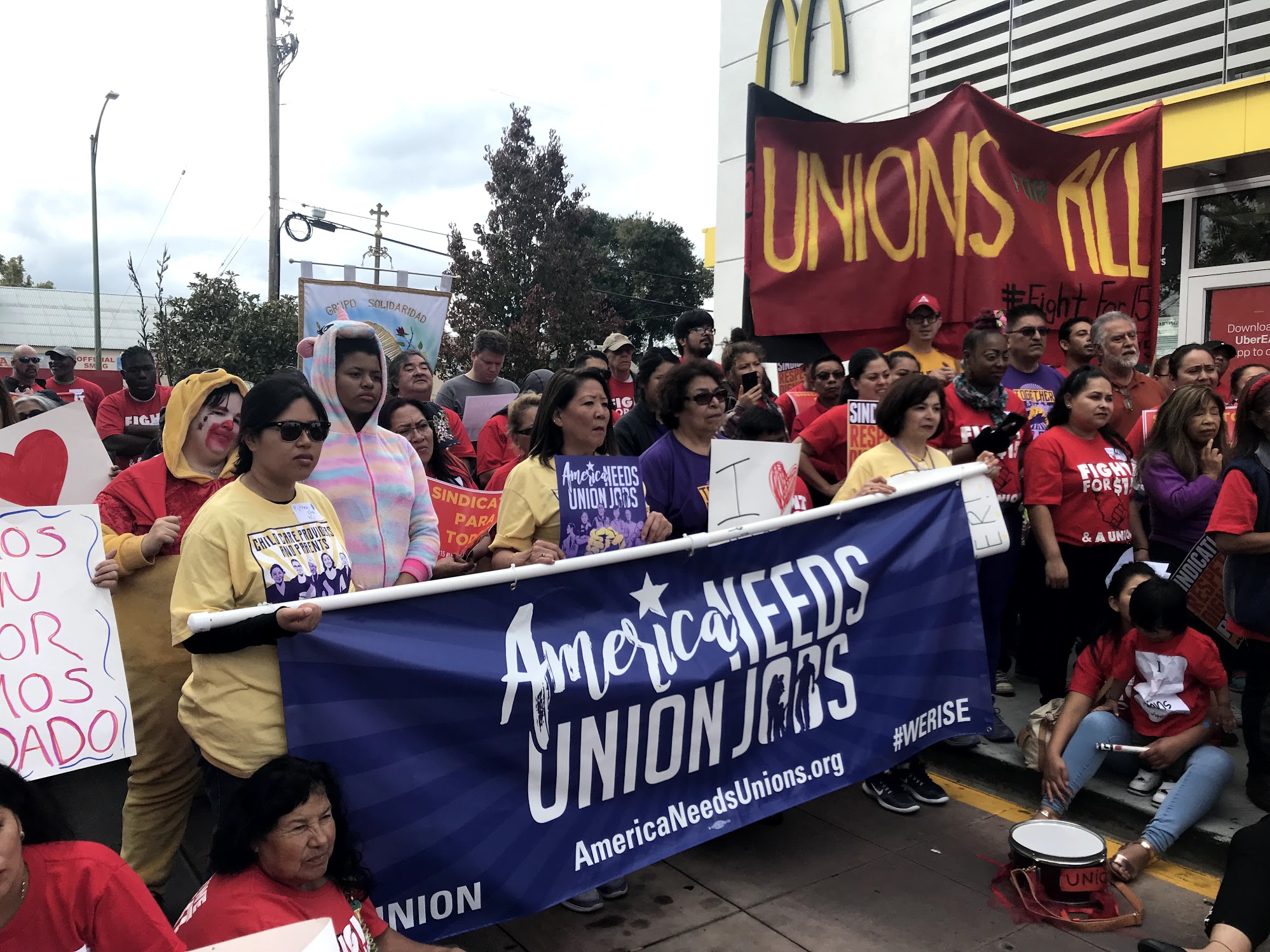 Around 300 local fast-food workers, child care providers and a variety of other Silicon Valley working families rallied together on Thursday, October 4th, starting the day with a strike and walkout at McDonald’s, followed by a rally at Community Child Care Council of Santa Clara County Inc. (4Cs) calling for union rights for all. The day closed with an action at Google headquarters in Mountain View, calling on the tech giant to work with the community when planning its San Jose campus.