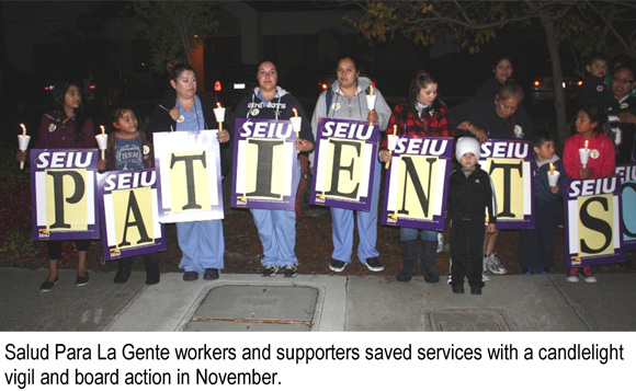 In Santa Cruz County, nearly 200 Salud Para La Gente workers and community members protected vital services by filling the board of directors meeting and successfully halting layoffs of front line workers.