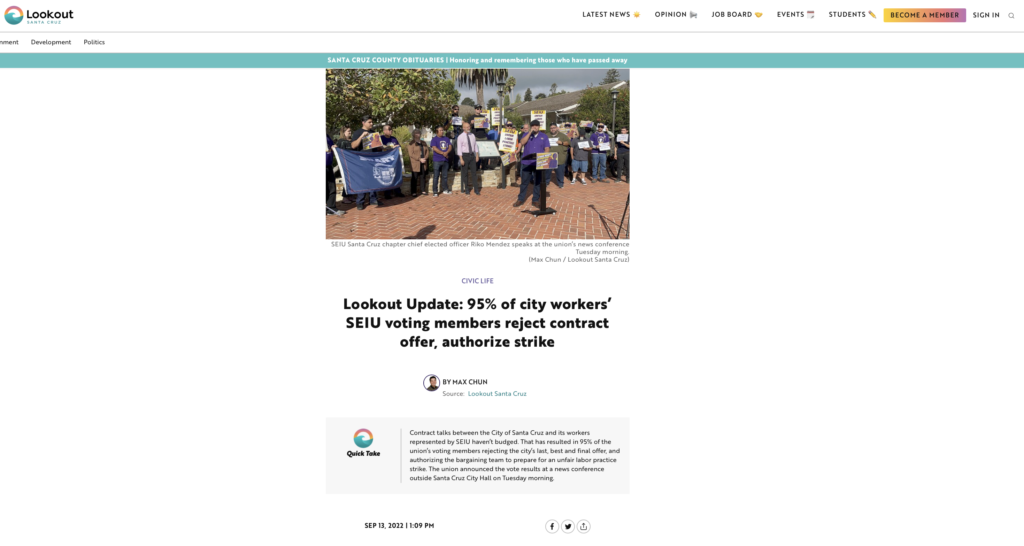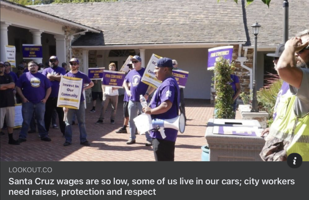 Read the op-ed published in LookOut Santa Cruz on June 28, 2022: Santa Cruz wages are so low, some of us live in our cars; city workers need raises, protection and respect