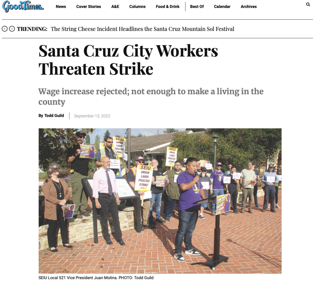 You made history this week as our collective strength was on full display over the last three days during the first-ever strike for SEIU 521 Santa Cruz City workers. Our community demonstrated its solidarity but more importantly, we gained a level of respect from Management we will build upon.