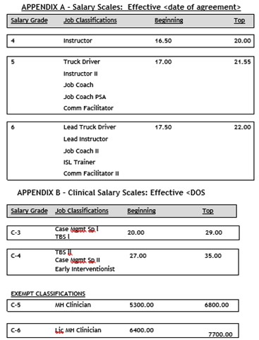 Pay amounts showed in the above table for Exempt Classifications are paid twice a week. DOS means once the contract is ratified by our SEIU 521 union membership.