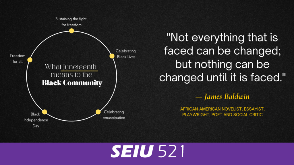 “Knowledge is power. Juneteenth is a reminder of hard those before I fought for racial justice. I am proud to continue fighting with my SEIU Local 521 family for racial equity, unity, and power!”