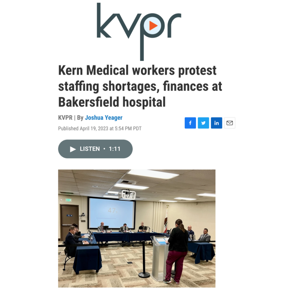 April 19, 2023 – “The short-staffed and exhausted safety net hospital workers demand answers on how the Kern County Hospital Authority overpaid the firm employing hospital administrators by $23 million and why it cannot provide an explanation or why there’s no investigation.”