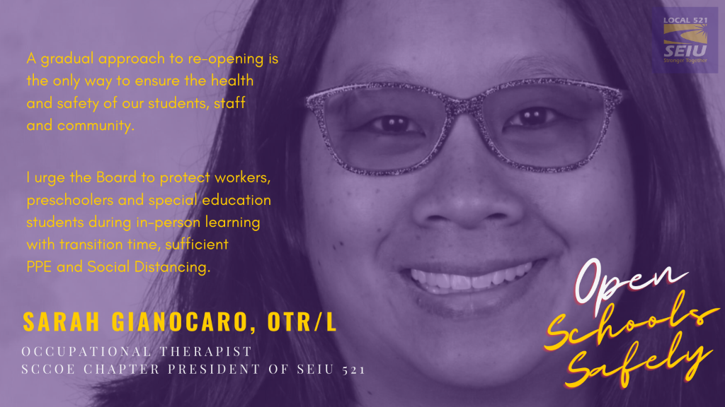 Sarah Gianocaro, COE SEIU 521 Chapter President