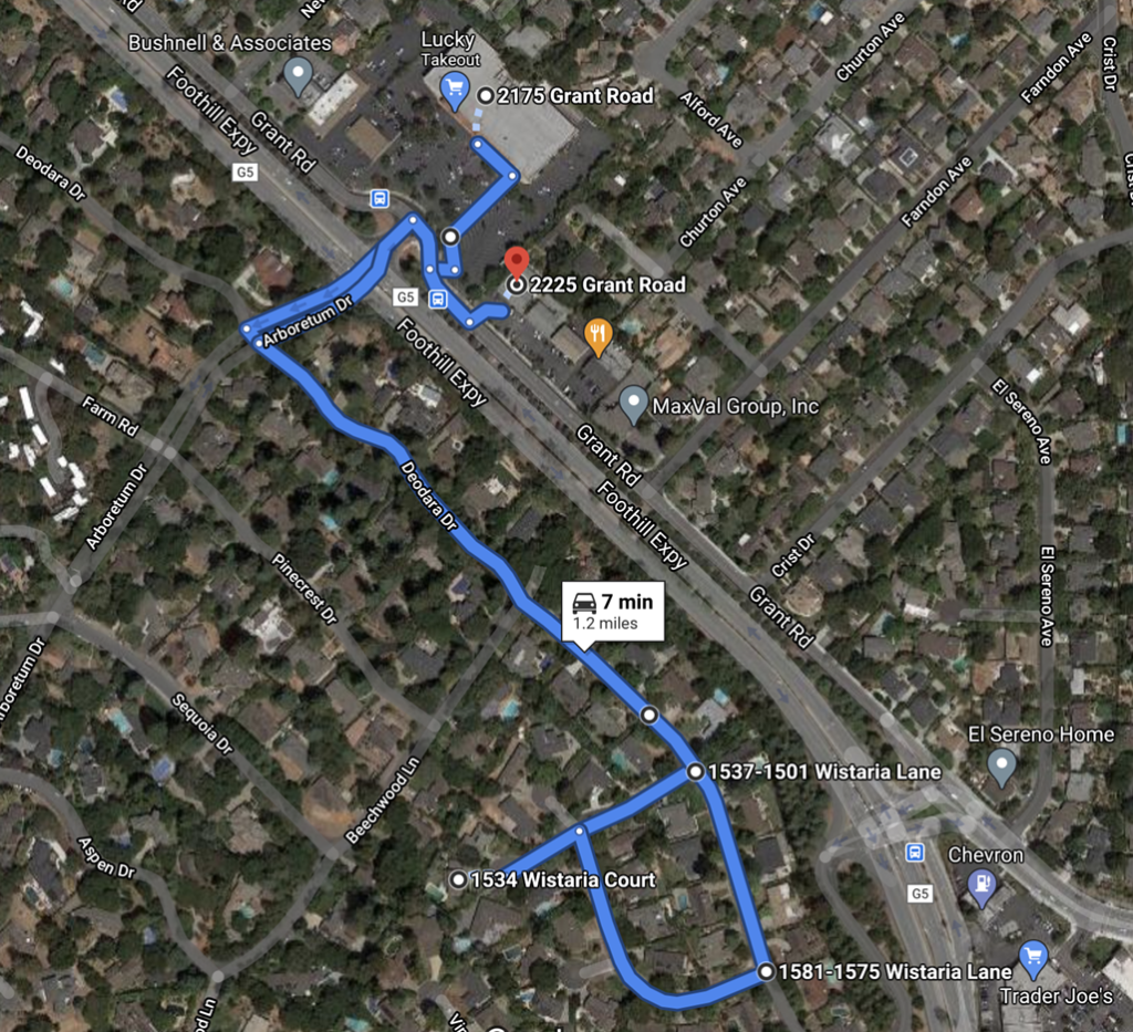 - Meet up location: Lucky’s parking lot at 2175 Grant Rd., Los Altos, CA 94024