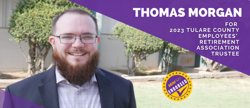 My name is Thomas Morgan, I’m a Library Assistant II at the County of Tulare and I’m asking for your vote as a Trustee on the Tulare County Employees Retirement Association.